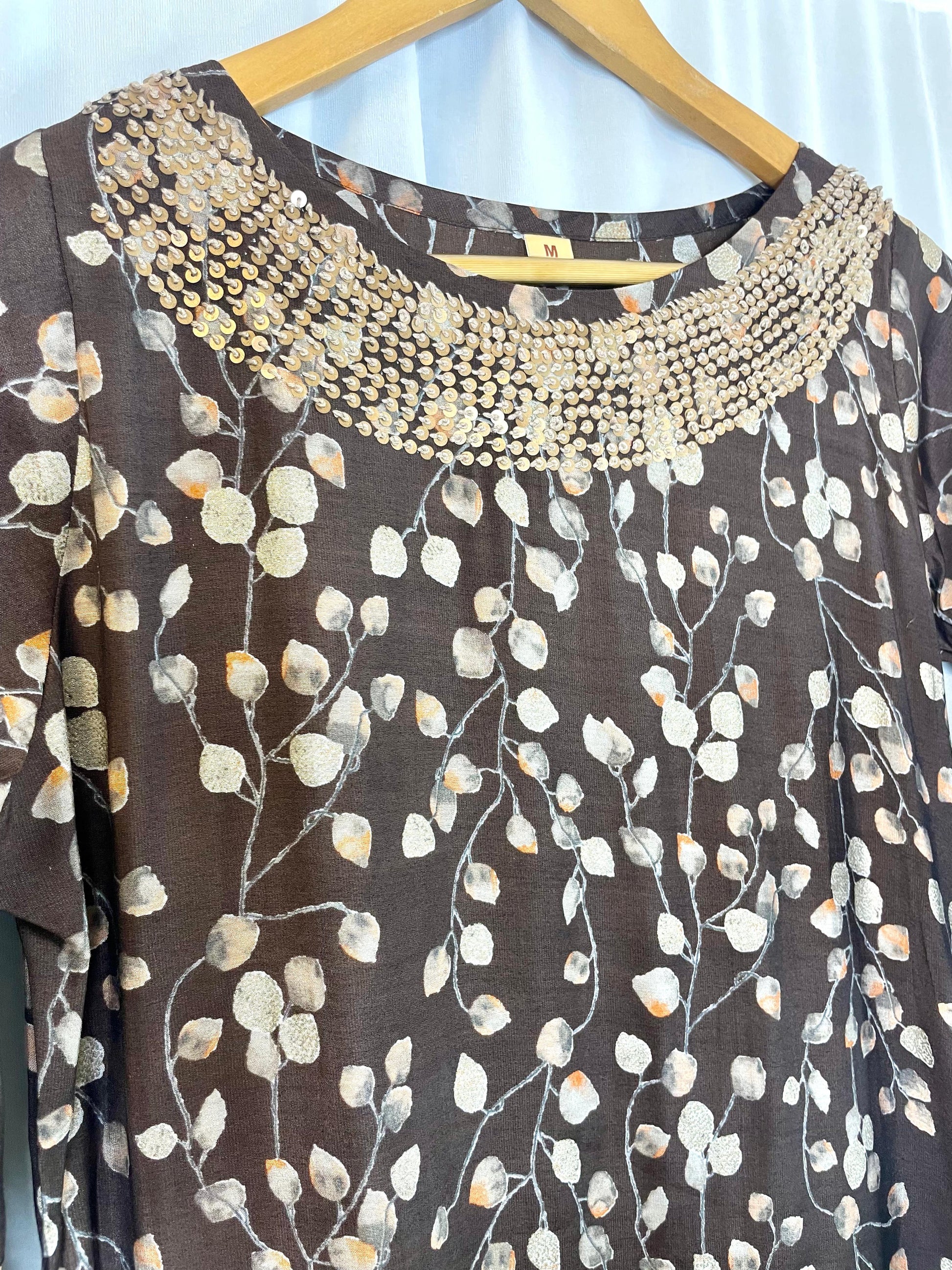 A versatile designer kurti adorned with handwork, ideal for casual and festive wear